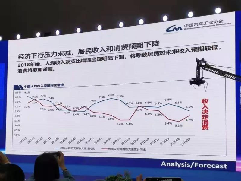 最直接的體現(xiàn)就是購(gòu)買力降低、消費(fèi)信心不足。這也是中汽協(xié)在調(diào)研中,收到的車企反映的普遍問(wèn)題。數(shù)據(jù)顯示,從2018年開(kāi)始,居民收入和支出增速明顯降低,汽車消費(fèi)低迷拉低了社會(huì)整體消費(fèi)水平。10月,社會(huì)消費(fèi)品零售總額同比增長(zhǎng)7.2%(扣除價(jià)格因素實(shí)際增長(zhǎng)4.9%),其中,汽車消費(fèi)同比下降3.3%。