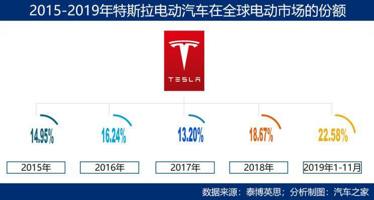 2017年,特斯拉受產(chǎn)能瓶頸所累,Model 3的量產(chǎn)一再跳票,當(dāng)年特斯拉的銷量在全球市場的份額僅為13.2%,那一年也是特斯拉在媒體口中的“將死之年”。然而,2018年,狂人馬斯克睡工廠、建帳篷產(chǎn)線,下半年Model 3產(chǎn)能瓶頸突破,特斯拉“活”過來了。同樣是這一年,特斯拉將在上海建中國工廠的協(xié)議達(dá)成,進(jìn)軍全球最大電動(dòng)車市場的步履加快。此后,Model 3成為特斯拉在全球多國市場絞殺的利器,今年前十一個(gè)月,特斯拉一個(gè)品牌的全球銷量比重已經(jīng)達(dá)到23%,其中Model 3就銷售了26萬輛。