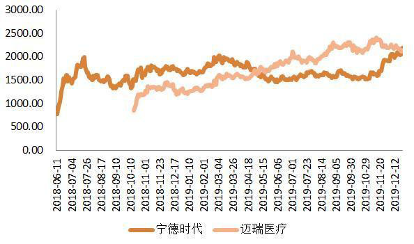 寧德時(shí)代與邁瑞醫(yī)療的總市值(億元)