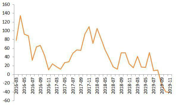 伴隨著下游的負(fù)增長(zhǎng),壓力也傳導(dǎo)至了上游的動(dòng)力電池行業(yè)。據(jù)高工產(chǎn)業(yè)研究院(GGII)12月9日發(fā)布的《動(dòng)力電池月度數(shù)據(jù)庫(kù)》統(tǒng)計(jì)顯示,2019年11月動(dòng)力電池裝機(jī)量約6.29GWh,同比下降29%。