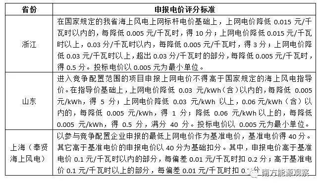 山東也在近期公布了海上風(fēng)電競(jìng)爭(zhēng)配置方案,該方案將降價(jià)幅度限制在0.1元以內(nèi),按照規(guī)則,業(yè)主在指導(dǎo)電價(jià)的基礎(chǔ)上降0.1元就可以拿到滿分40分。山東2019年通過(guò)競(jìng)爭(zhēng)配置確定的4個(gè)項(xiàng)目的申報(bào)電價(jià)均在0.79元/千瓦時(shí),四個(gè)業(yè)主在申報(bào)電價(jià)競(jìng)爭(zhēng)要素中得分相同。