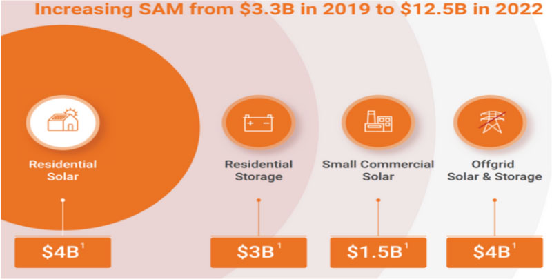 根據(jù)第三方的綜合估算,預(yù)計(jì)Enphase公司在全球住宅服務(wù)可用市場(chǎng)(SAM)的收入從今年的25億美元增長(zhǎng)到2022年的40億美元。調(diào)研機(jī)構(gòu)Wood Mackenzie 公司的最新分析表明,迄今為止,Enphase公司在住宅太陽(yáng)能市場(chǎng)份額為19%。
