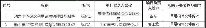 動力電池梯次利用儲能系統(tǒng)框架招標(biāo)項(xiàng)目(二次招標(biāo))中標(biāo)候選人公示