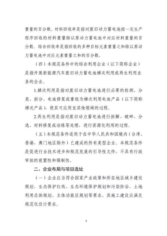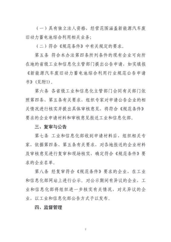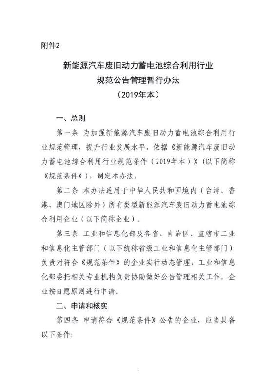 2.新能源汽車廢舊動(dòng)力蓄電池綜合利用行業(yè)規(guī)范公告管理暫行辦法(2019年本)