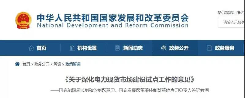 中國儲能網(wǎng)訊:近日,國家發(fā)展改革委、國家能源局印發(fā)《關(guān)于深化電力現(xiàn)貨市場建設(shè)試點工作的意見》(以下簡稱《意見》),引起行業(yè)廣泛關(guān)注。為方便各方準(zhǔn)確理解政策要求,加快我國現(xiàn)代電力市場體系建設(shè)步伐,記者采訪了國家能源局法制和體制改革司、國家發(fā)展改革委體制改革綜合司負(fù)責(zé)人,就《意見》內(nèi)容進(jìn)行了解讀。