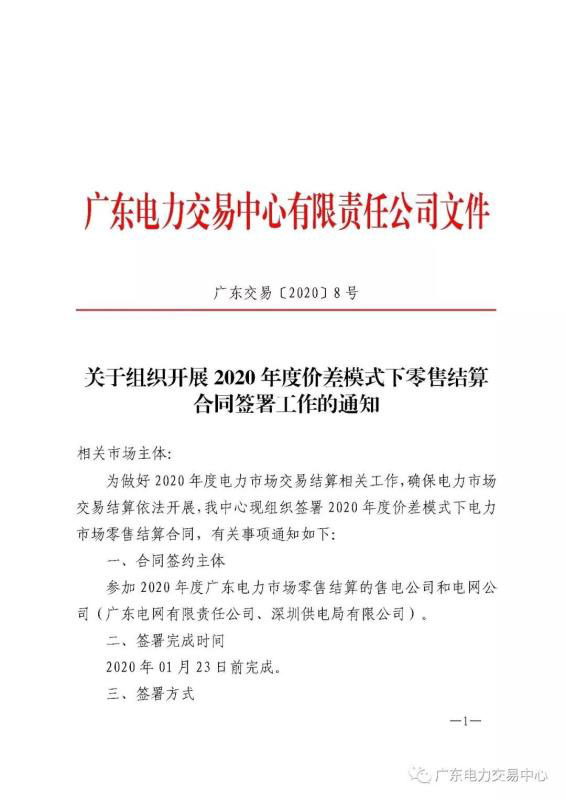 近日,廣東電力交易中心下發(fā)2020年度電力市場交易結(jié)算相關(guān)工作的相關(guān)通知,并組織簽署2020年度價(jià)差模式下電力市場零售結(jié)算合同。