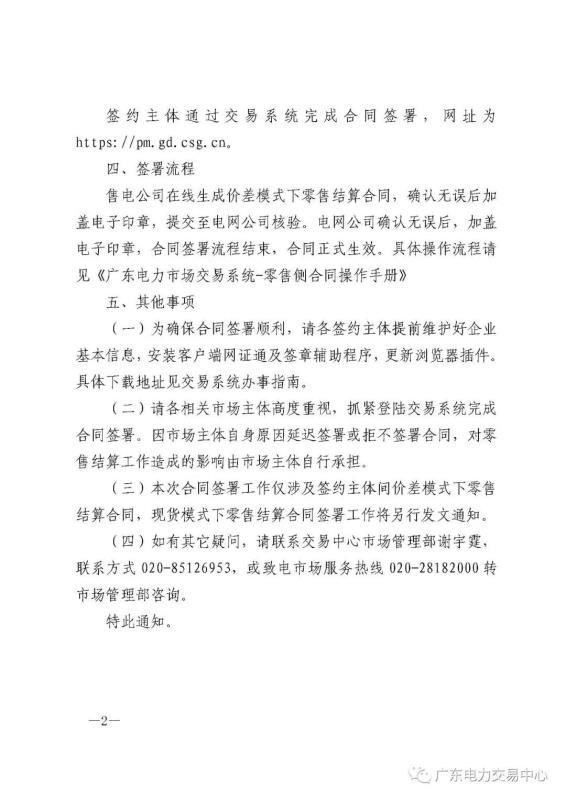 需要強(qiáng)調(diào)的是:本次合同簽署工作僅涉及簽約主體間價(jià)差模式下的零售結(jié)算合同,現(xiàn)貨模式下零售結(jié)算合同簽署將會(huì)另外發(fā)文通知。