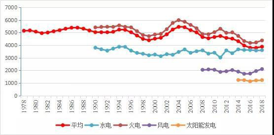 ▲圖2:1978年-2018年分類型發(fā)電設(shè)備利用小時數(shù)