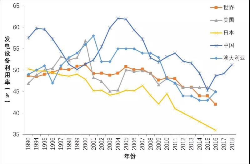 ▲圖1:世界和部分國家的發(fā)電設(shè)備利用率變化情況