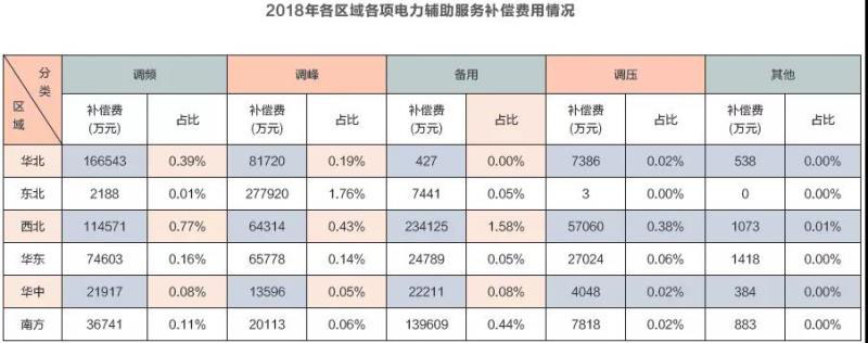 這種以計劃補償為特征的電力輔助服務(wù)模式迄今仍在全國運行。2018年,全國除西藏外31個?。▍^(qū)、市、地區(qū))參與電力輔助服務(wù)補償?shù)钠髽I(yè)4176家,裝機容量13.21億千瓦,補償費用147.62億元,占上網(wǎng)電費總額0.83%。西北地區(qū)電力輔助服務(wù)補償費用占上網(wǎng)電費總額比例最高為3.17%。
