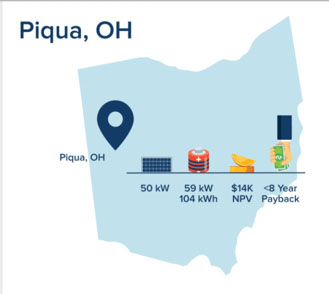在皮奎市,商業(yè)需求收費(fèi)很高(每千瓦16美元),與典型的獨(dú)立部署的太陽(yáng)能發(fā)電設(shè)施的14年投資回收期相比,對(duì)太陽(yáng)能+儲(chǔ)能項(xiàng)目的投資可以在不到8年的時(shí)間內(nèi)收回投資。對(duì)于俄亥俄州的典型中型商業(yè)客戶來說,每年將節(jié)省10.5萬美元。