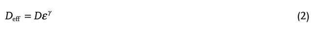 其中Deff可以通過電極的迂曲度γ和孔隙率ε計算得到(如下式所示)