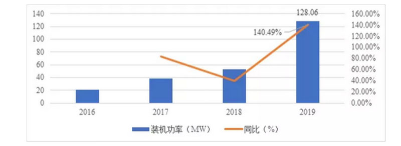 GGII數(shù)據(jù)顯示,從燃料電池裝機(jī)情況來(lái)看,2019年全年中國(guó)氫燃料電池裝機(jī)量為128.06MW,同比增長(zhǎng)140.49%。