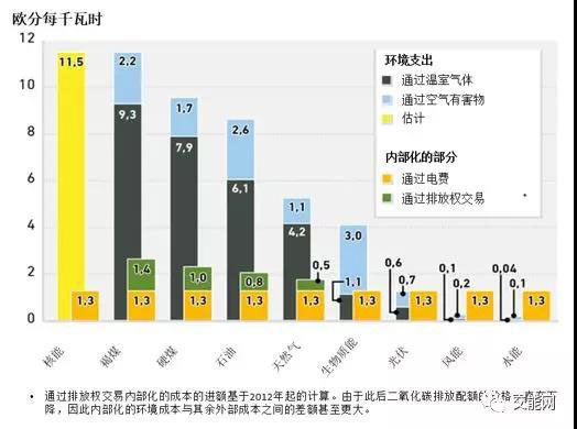 圖12德國(guó)發(fā)電的環(huán)境成本和內(nèi)部化份額(2014)