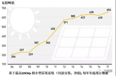 圖9 一千歐元可投資的光伏裝機(jī)量變化(2006-2017)