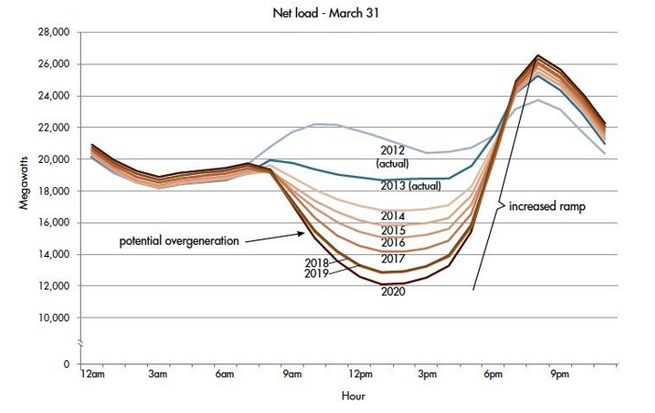 在過去的幾年中,電動汽車行業(yè)已經(jīng)確定了電網(wǎng)容量的某些模式。研究人員對于電動汽車導致電網(wǎng)產(chǎn)生的“龍曲線”(如圖1所示)發(fā)出警告?!褒埱€”是指電動汽車充電對于電力需求峰值曲線的影響,是指電動汽車用戶通常在工作日早晨以及夜晚在家為電動汽車充電時出現(xiàn)的能源需求高峰。