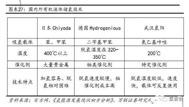 武漢氫陽(yáng)是國(guó)內(nèi)唯一一家做有機(jī)液體儲(chǔ)氫的企業(yè),其開發(fā)的常溫常壓下液態(tài)有機(jī)儲(chǔ)氫(LOHC)技術(shù)攻克了氫氣常溫常壓下液態(tài)儲(chǔ)存和運(yùn)輸?shù)碾y題,該項(xiàng)技術(shù)在世界范圍內(nèi)處于領(lǐng)先地位,相比較于日本Chiyoda和德國(guó)Hydrogenious具有脫氫溫度低,儲(chǔ)氫可逆,載體無消耗的優(yōu)勢(shì)。武漢氫陽(yáng)第一批儲(chǔ)氫材料—儲(chǔ)油于2019年3月正式投產(chǎn),一期工程年產(chǎn)1000噸,產(chǎn)值5000萬元,工程全部建成后可年產(chǎn)100萬噸液提有機(jī)儲(chǔ)氫材料。