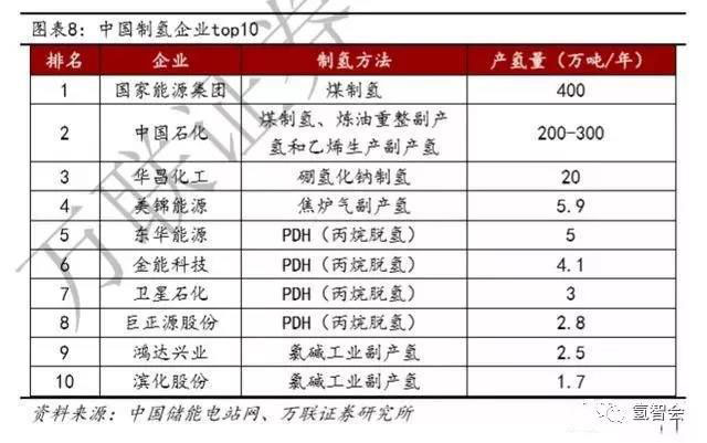 我國(guó)煤制氫產(chǎn)能最大的企業(yè)是國(guó)家能源集團(tuán),其在氫能源產(chǎn)業(yè)有著得天獨(dú)厚的優(yōu)勢(shì),目前煤化工板塊年產(chǎn)超過 400 萬噸氫氣,已具備能供應(yīng)4000萬輛燃料電池乘用車的制氫能力,世界排名第一;中國(guó)石化目前擁有制氫能力約300萬噸/年。在氫氣供給方面,無論是煤制氫、可再生能源制氫,還是工業(yè)副產(chǎn)品制氫,中國(guó)石化都有巨大的供給能力,氫氣產(chǎn)能在國(guó)內(nèi)名列前茅。