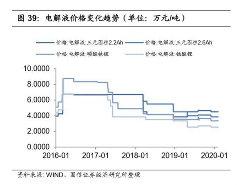 高鎳化對電解液提出升級需求,龍頭企業(yè)布局添加劑和新型鋰鹽增強差異化競 爭能力。行業(yè)對續(xù)航里程及能量密度的提升推動了電池高鎳化進展,而動力電 池從 333/523 到 622/811 的發(fā)展過程也給電解液帶來了巨大的挑戰(zhàn):高鎳三元 正極的吸水性強、穩(wěn)定性低,在高溫條件下鎳元素的催化作用會加速電解液的 分解,使電解液氧化、產(chǎn)氣,極片產(chǎn)生裂縫并且溶出的錳、鈷等過渡金屬離子 還會破壞負(fù)極上的 SEI 膜,致使在高溫環(huán)境下電池的容量、循環(huán)和安全性都受 到嚴(yán)重影響。從目前的改進措施來看,新型溶劑和鋰鹽雖然得到了部分應(yīng)用, 但出于多方面性能要求和成本考慮,新添加劑的開發(fā)仍是電解液性能提升的關(guān) 鍵。同時新型鋰鹽的布局也有助于龍頭公司實現(xiàn)高端化競爭策略。
