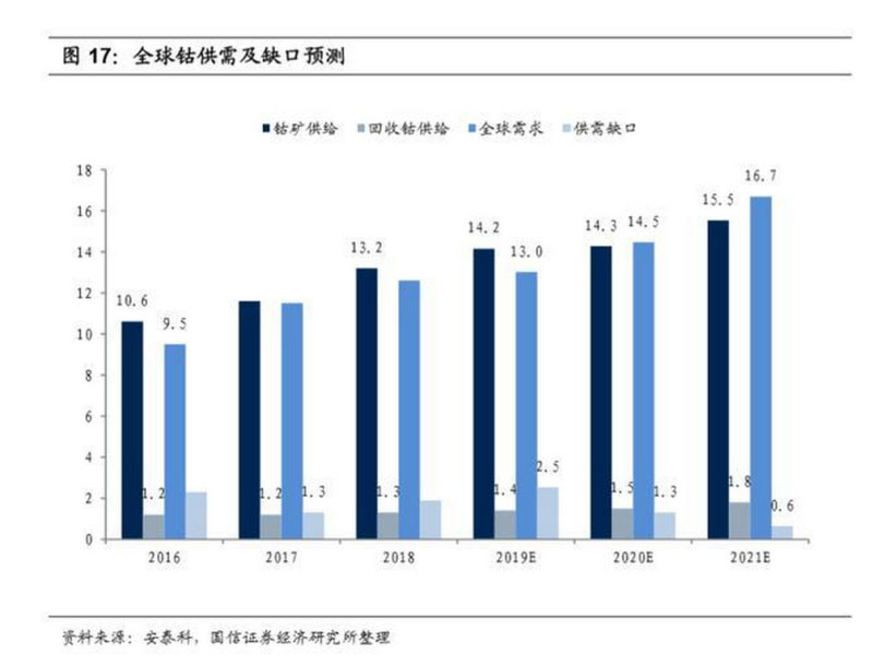 從產(chǎn)業(yè)鏈角度看,上游原材料資源屬性較重,產(chǎn)品價格伴隨供需結(jié)構(gòu)變化具有 較強的周期性,目前無論是鈷還是鋰的價格均屬于歷史相對低位,在行業(yè)盈利 能力普遍較低產(chǎn)能增長受限的情況下,受益于下游 5G 帶來的 3C 數(shù)碼領(lǐng)域需求 增長以及新能源汽車行業(yè)的快速增長,行業(yè)供需呈現(xiàn)出邊際改善趨勢,特別是 鈷產(chǎn)業(yè)鏈,伴隨價格逐步回升社會補庫存將會進一步改善供需結(jié)構(gòu),建議重點 關(guān)注鈷產(chǎn)業(yè)鏈的彈性標(biāo)的寒銳鈷業(yè)、華友鈷業(yè)和道氏技術(shù)。