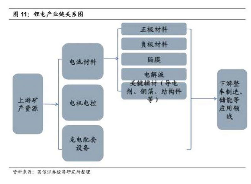上游鈷鋰原材料、中游鋰電池制造、電機電控及充電設(shè)備、下游整車廠