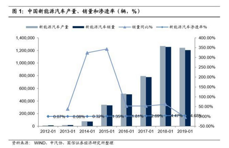 2019 年全年國內(nèi)新能源汽車?yán)塾嬩N售 120.6 萬輛,同比下降 4%,目前新能源 汽車滲透率僅為 4.68%,未來成長空間巨大。受補貼退補和傳統(tǒng)燃油汽車銷量 不佳影響,新能源汽車銷量連續(xù)下滑,根據(jù)中汽協(xié)數(shù)據(jù)統(tǒng)計,截至 2019 年 12 月我國新能源汽車銷量為 120.6 萬臺,同比下降 4%, “補貼退坡+爆款車型斷檔” 是目前國內(nèi)新能源汽車銷量面臨的最大難題。從成長空間看,2019 年新能源汽 車銷量滲透率僅為 4.68%,存量滲透率不足 2%,在此大背景下,未來新能源 汽車成長空間巨大。