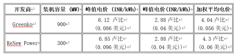 Greenko公司部署的裝機(jī)容量為900MW混合能源的加權(quán)平均電價(jià)為4.04印度盧比/kWh(5.61美分/kWh)。