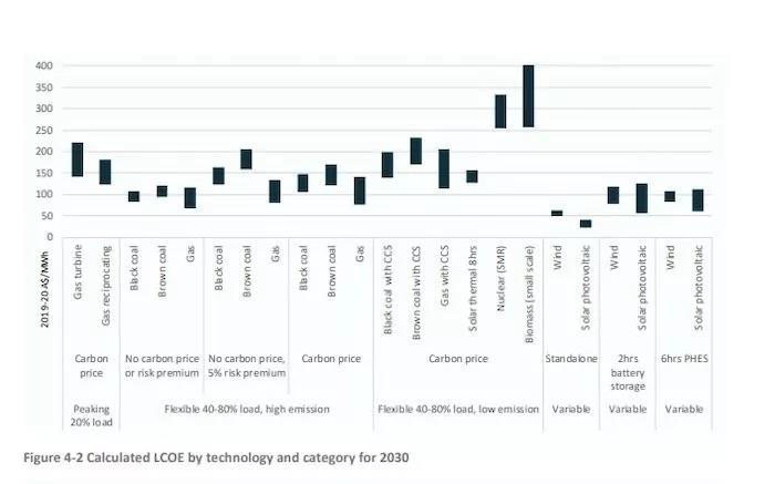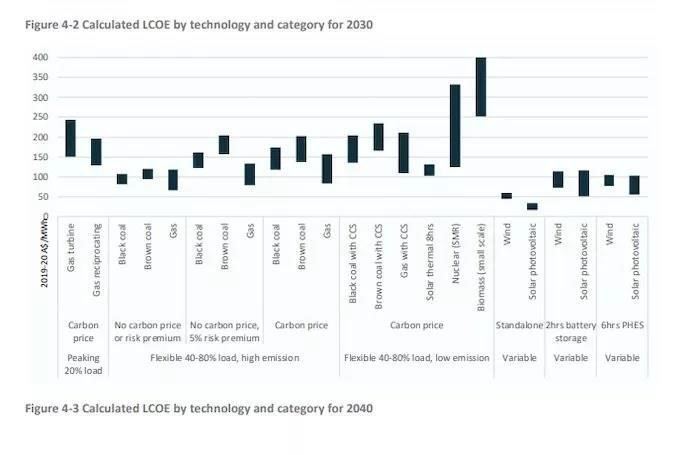 近日,雙方更新了相關(guān)研究,發(fā)布了一份名為“GenCost2019-20”的報(bào)告,再次明確提出風(fēng)能、太陽(yáng)能和儲(chǔ)能仍是最便宜的技術(shù),無(wú)論是現(xiàn)在還是將來(lái),都比澳大利亞政府倡導(dǎo)的天然氣、碳捕獲、核能等技術(shù)要便宜得多。