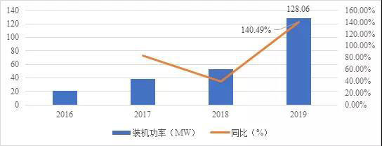 2016-2019年中國氫燃料電池裝車功率(單位:MW,%)
