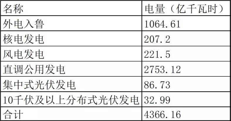 2019年山東省的總用電量是5066.81億千瓦時(shí),各類電源發(fā)電量分別主要見下: