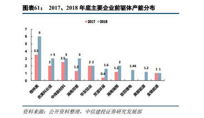 “2018年,國(guó)內(nèi)三元前驅(qū)體產(chǎn)量為21.8萬(wàn)噸,其中格林美、優(yōu)美科、中偉新材三家是行業(yè)的第一梯隊(duì)?!贝饲?,中信建投在一份研報(bào)中提及。而中偉新材則在輔導(dǎo)材料中稱(chēng),2018年公司在行業(yè)中出貨量排名第二。