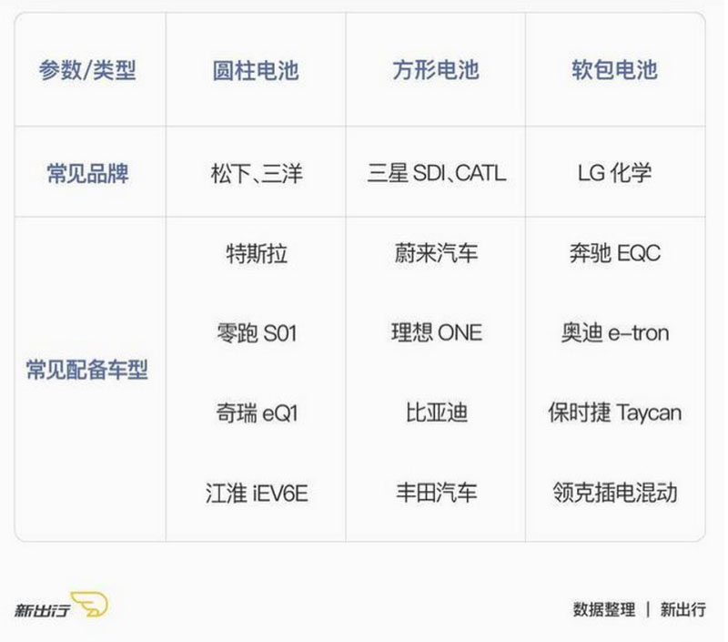 簡單理解:這三個(gè)種類主要都是在電池的外型上做區(qū)分。以目前市面上主流的電動(dòng)車為例,特斯拉旗下全部車型都采用的是圓柱電池,國產(chǎn)車型只有零跑 S01、奇瑞小螞蟻、江淮 iEV6E 這樣的小型車使用和特斯拉一樣的 18650 電池;蔚來全系、比亞迪等國產(chǎn)車型大多采用的是方形電池;奔馳 EQC、奧迪 e-tron 以及保時(shí)捷 Taycan 用的是軟包電池,接下來我們?yōu)榇蠹以敿?xì)的介紹這三種類型的電池都有什么優(yōu)點(diǎn)和缺點(diǎn)。