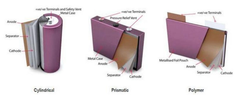 三種形式:圓柱電池、方形電池、軟包電池