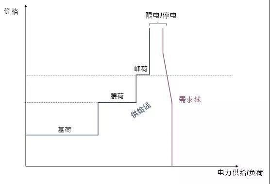 但真實(shí)情況是,由于沒有實(shí)時(shí)表計(jì)、計(jì)費(fèi)和其他必要設(shè)備,電力用戶無法實(shí)時(shí)地對(duì)電力價(jià)格進(jìn)行響應(yīng),電力市場只能接受“需求側(cè)缺陷”。更重要的是,儲(chǔ)能設(shè)備成本仍然高企,當(dāng)容量稀缺時(shí),負(fù)荷側(cè)的彈性小,供應(yīng)短缺時(shí)用戶被迫輪流停電(如圖1所示)。