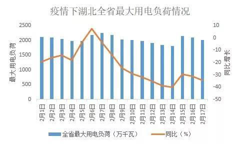 數(shù)據(jù)顯示,進入2月份以來,湖北全省的日用電量和最大負荷總體較同期均大幅下降。除2月6、7日兩天比同期分別增長6.84%和0.58%外,其余時期日用電量均下降,從17天的統(tǒng)計數(shù)據(jù)來看,下降超過20%的有13天,其中超過30%的有8天。
