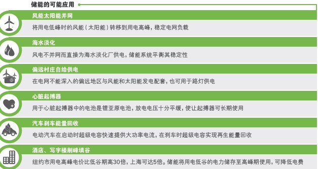 但上述兩個(gè)行業(yè)給儲(chǔ)能留下了伏筆。在沒(méi)有儲(chǔ)能的情況下,風(fēng)電場(chǎng)旁總是要修建一些火電廠,以備沒(méi)有風(fēng)時(shí)替代風(fēng)機(jī)發(fā)電——不然脆弱的電網(wǎng)將因電壓劇烈變化而崩潰。這聽上去像個(gè)笑話,但卻是事實(shí)。而中國(guó)政府確定在未來(lái)10年將可再生能源占總體能源比例由不到5%提高至15%,大規(guī)模儲(chǔ)能(可以把它想象成巨型電池,把多余的電力存儲(chǔ)起來(lái),到無(wú)風(fēng)可用時(shí)再釋放出來(lái)),是解決這一問(wèn)題的不二之選。