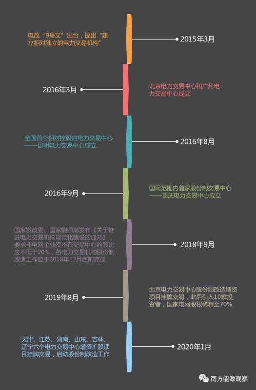 2月24日,國家發(fā)改委、國家能源局發(fā)布《關于推進電力交易機構獨立規(guī)范運行的實施意見》(以下簡稱《實施意見》),電力交易機構的股份制改造有了明確的時間表。如能按期完成,到2020年底,電網公司將不再在國內任何電力交易中心占據絕對控股地位。