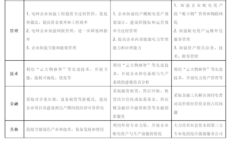 總之,上述三類電力成本性質(zhì)不同,對(duì)企業(yè)經(jīng)營和投融資能力影響機(jī)制不同,因此,降低企業(yè)電力成本,需要圍繞三類電力成本從政策、市場(chǎng)、技術(shù)、管理和金融等多方面發(fā)力,因地制宜,綜合施策。