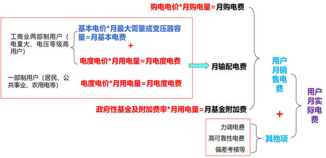 銷售電價(jià)=購電電價(jià)+輸配電價(jià)+政府性基金及附加