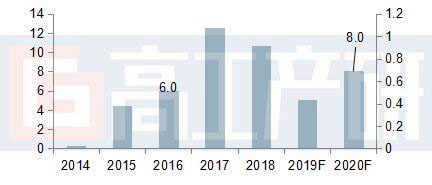 2014-2020年新能源物流車產(chǎn)量及預(yù)測(cè)(萬(wàn)輛)