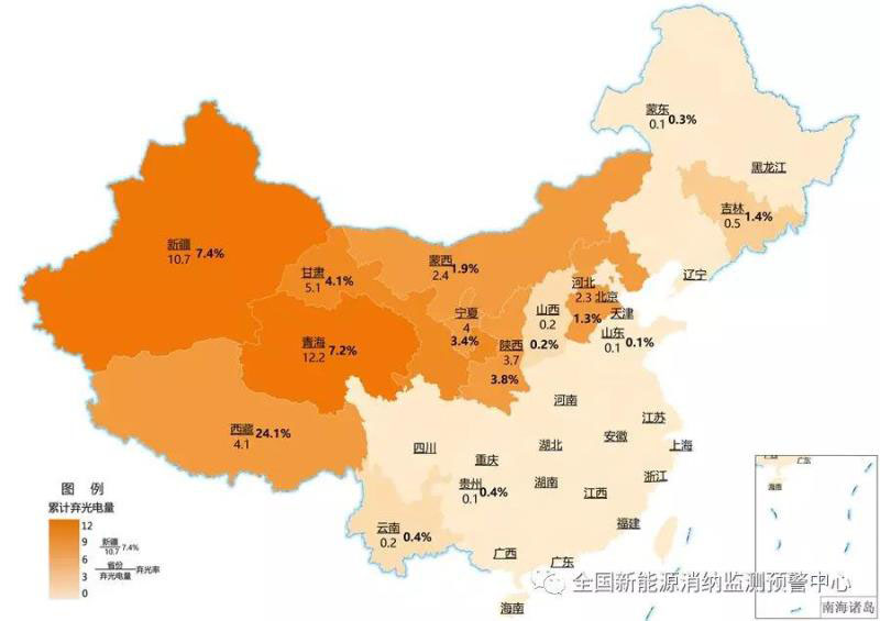 截至12月底各地區(qū)累計(jì)棄光電量(億千瓦時(shí))及棄光率