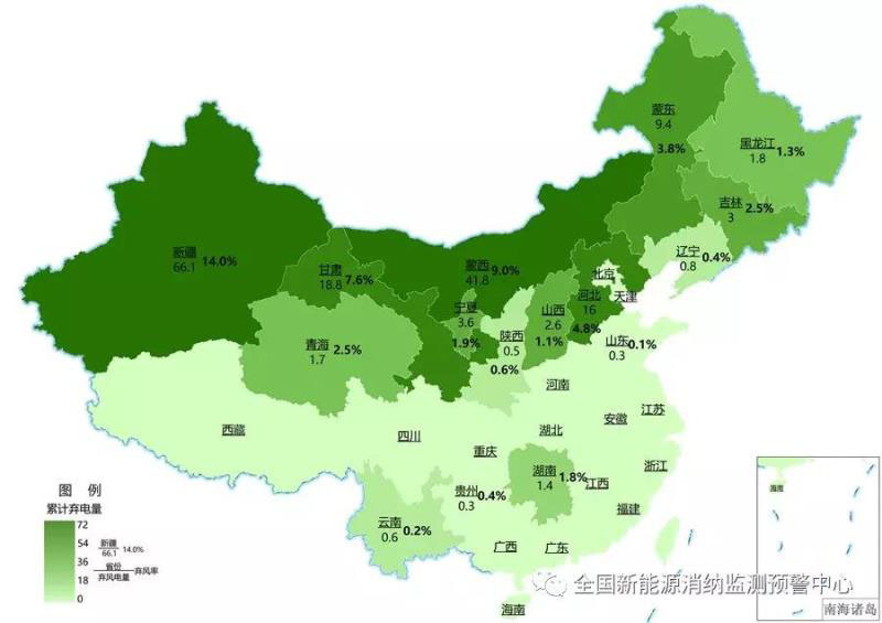 西北地區(qū)棄風(fēng)棄光持續(xù)改善,全年棄風(fēng)率、棄光率同比分別下降8.8個(gè)百分點(diǎn)、3.8個(gè)百分點(diǎn),新疆、甘肅新能源消納形勢(shì)顯著好轉(zhuǎn),青海棄風(fēng)棄光有所增加;華北地區(qū)全年來(lái)風(fēng)總體偏小,客觀上減少了消納壓力,全年棄風(fēng)率6.9%,棄光率1.1%;東北地區(qū)新能源消納繼續(xù)保持較好態(tài)勢(shì),全年棄風(fēng)率3.0%,基本無(wú)棄光;華中、華東和南方地區(qū)消納情況整體較好,四季度除西藏、云南存在一定棄風(fēng)棄光,其余地區(qū)無(wú)新能源消納問(wèn)題。
