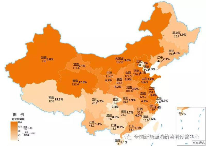 截至12月底各地區(qū)累計(jì)光伏發(fā)電量(億千瓦時(shí))及占本地區(qū)總發(fā)電量比重