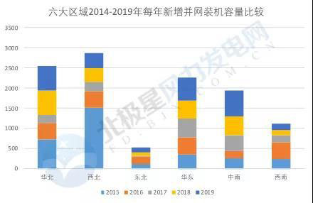 從新增并網(wǎng)裝機來看,截止到2019年末,華東、中南、西南三個區(qū)域新增裝機量達1378萬千瓦,已經(jīng)超過了“三北”地區(qū)1106萬千瓦的增量;從累計裝機增長情況來看,華東、中南、西南三區(qū)域新增裝機所占比重提高至53.5%。