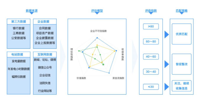 在資產(chǎn)上鏈確權(quán)完成后,對光伏資產(chǎn)的質(zhì)量進(jìn)行評級和增信是新能鏈推動(dòng)資產(chǎn)高效流通的第二個(gè)舉措,以資產(chǎn)的可信數(shù)據(jù)為基礎(chǔ)從環(huán)境、運(yùn)營、設(shè)備、風(fēng)控四大維度建立評級模型,聯(lián)合鏈上第三方節(jié)點(diǎn)機(jī)構(gòu)綜合判斷資產(chǎn)的屬性等級。同時(shí),基于資產(chǎn)上鏈的可信數(shù)據(jù)及光伏資產(chǎn)的物聯(lián)網(wǎng)設(shè)備采集數(shù)據(jù),通過數(shù)字化技術(shù)對光伏資產(chǎn)進(jìn)行更為客觀的增信。