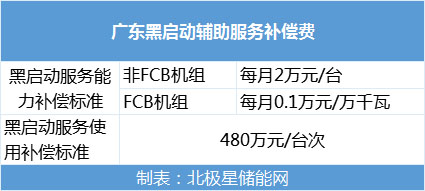 根據(jù)此前《南方區(qū)域并網(wǎng)發(fā)電廠輔助服務(wù)管理實(shí)施細(xì)則(修訂稿)》中的定義,黑啟動(dòng)服務(wù)費(fèi)分為能力費(fèi)和使用費(fèi),其中廣東地區(qū)的能力費(fèi)補(bǔ)償標(biāo)準(zhǔn)為2萬(wàn)元/臺(tái)或0.1萬(wàn)元/萬(wàn)千瓦,使用費(fèi)補(bǔ)償標(biāo)準(zhǔn)為480萬(wàn)元/臺(tái)次。