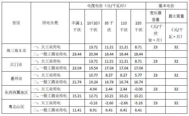 表2 廣東省電網(wǎng)各價區(qū)輸配電價表(不含深圳市)