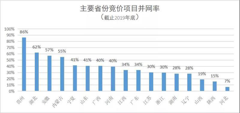 遼寧因?yàn)樾碌母?jìng)價(jià)項(xiàng)目只有分布式光伏,所以28%的并網(wǎng)率可以反映出,東北的分布式項(xiàng)目很難吸引投資企業(yè)的關(guān)注。而山西、陜西和河北的并網(wǎng)率都不足20%,意味著這三個(gè)省的管理模式在2020年有待進(jìn)一步提升和改進(jìn)。