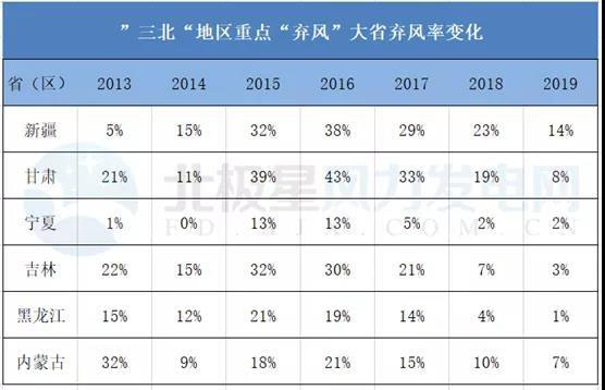 從數(shù)據(jù)來(lái)看,2019年棄風(fēng)率超過(guò)5%的地區(qū)僅有3個(gè)省份,3省棄風(fēng)電量占全國(guó)棄風(fēng)電量的 81%,新疆的棄風(fēng)率降至14.0%、甘肅的棄風(fēng)率降至7.6%、內(nèi)蒙古的棄風(fēng)率降至7.1%,遠(yuǎn)低于20%的紅色預(yù)警線(xiàn)。相關(guān)橙色區(qū)域內(nèi)蒙、河北等地棄風(fēng)率均下降到10%。