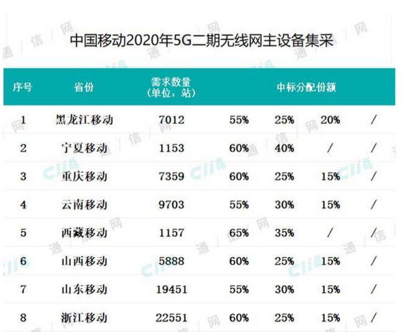 C114訊 3月6日消息(九九)中國移動今日發(fā)布2020年5G二期無線網(wǎng)主設(shè)備集中采購公告,共涉及28個省、自治區(qū)、直轄市。據(jù)C114統(tǒng)計,總需求為232143站。公告顯示,本項目采用份額招標,中標人數(shù)量2-4家不等。